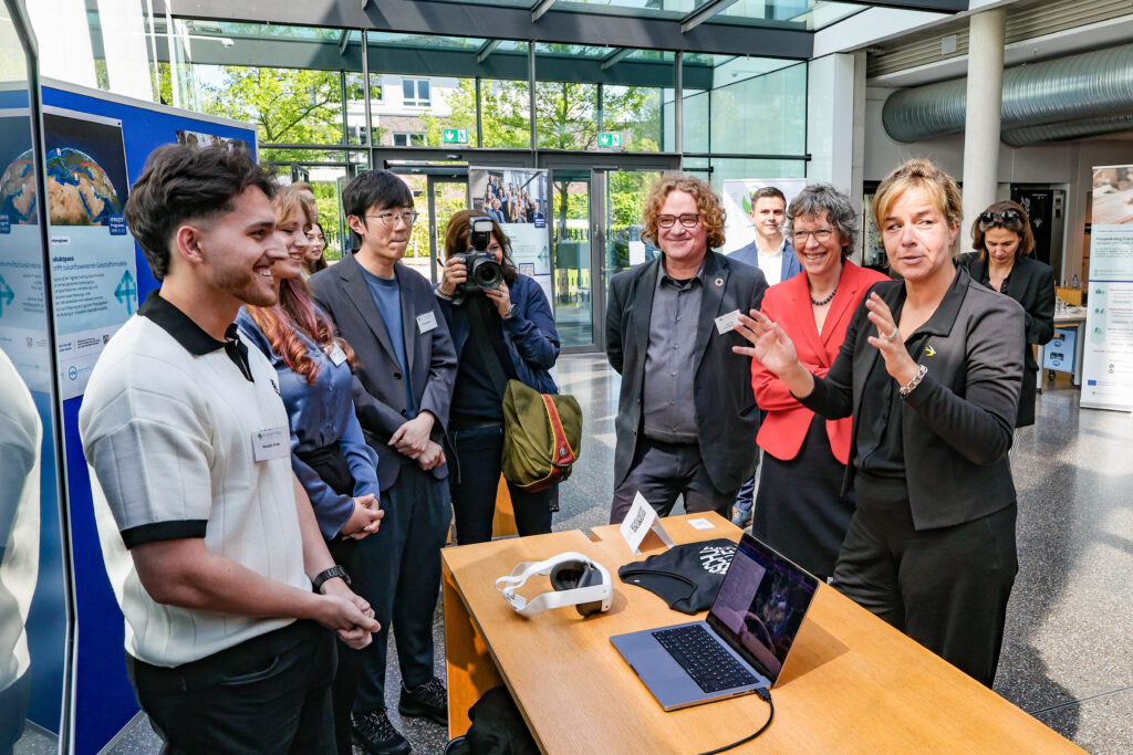 Im Rahmen ihrer EFRE-JTF-Tour durchs Ruhrgebiet hat die nordrhein westfälische Ministerin für Wirtschaft, Industrie, Klimaschutz und Energie, Mona Neubaur, uns am 24. April 2026 an der Hochschule Ruhr West in Bottrop besucht.